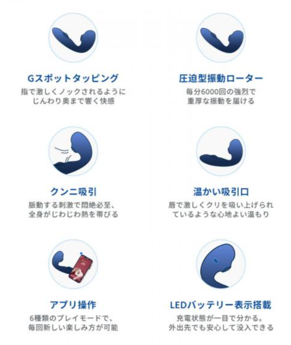・振動モード:複数パターン搭載(アプリで細かく調整可能)